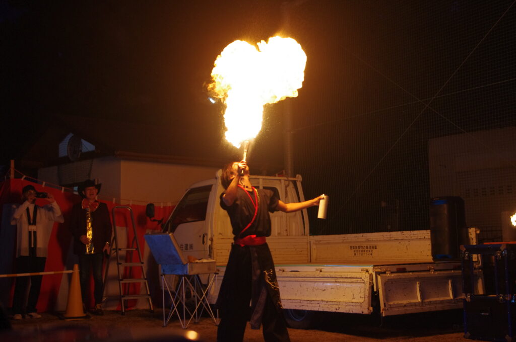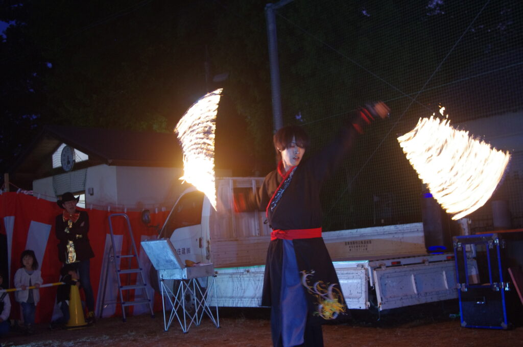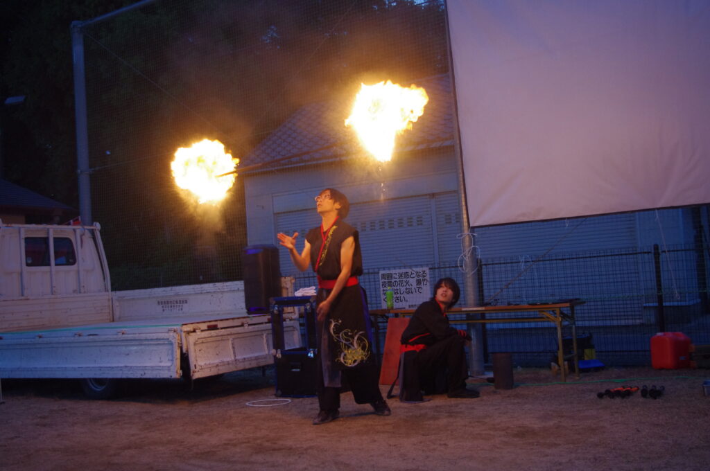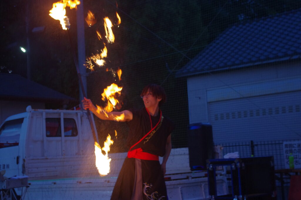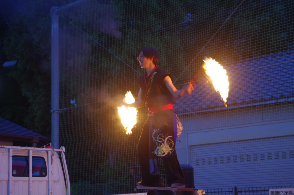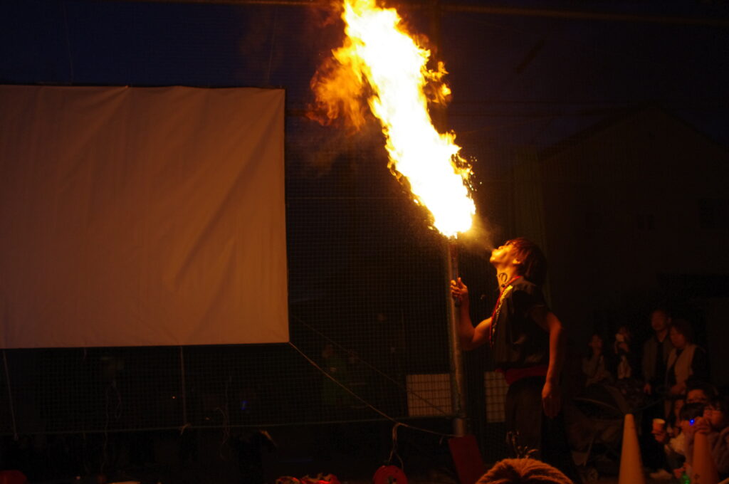 そして、皆さんお待ちかねの、大道芸たいきさんによるジャグリング&ファイヤーSHOWでは圧巻のパフォーマンスに、皆さんハラハラ、ドキドキしながら見入っていました💕