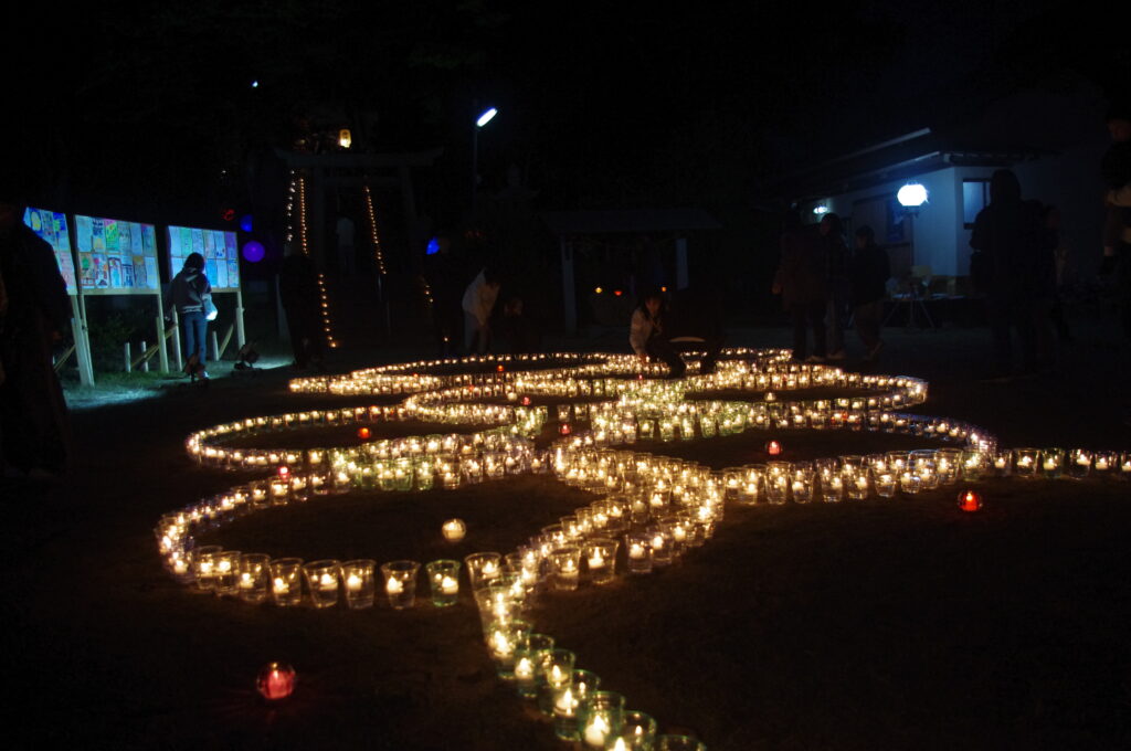 今年は愛宕公園では催し物と、なかしまマルシェを、中島神社ではキャンドルナイトとポスター展、書道展を開催しました。